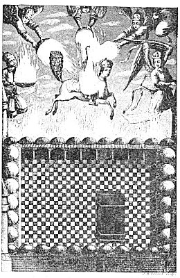 In the seventeenth sura of the Koran it is written that upon a certain night Mohammed was transported from the temple at Mecca to that of Jerusalem, but no details are given of the strange journey. In the Mishkāteu l-Masabih, Mohammed is made to describe his ascent through the seven heavens into the icy presence of the may-veiled God and his subsequent return to his own bed, all in a single night. Mohammed was awakened in the night by the Angel Gabriel, who, after removing the Prophet's heart, washed the cavity with Zamzam water, and filled the heart itself with faith and science. A strange creature, called Alborak, or the lightning bolt, was brought for the conveyance of the Prophet. Alborak is described as white animal of the shape and size of a mule, with the head of a woman and the tail of a peacock. According to some versions, Mohammed merely rode Alborak to Jerusalem, where, dismounting upon Mount Moriah, he caught hold of the lower rung of a golden ladder lowered from heaven and, accompanied by Gabriel, ascended through the seven spheres separating he earth from the inner surface of the empyrean. At the gate of each sphere stood me of the Patriarchs, whom Mohammed saluted as he entered the various planes. At the gate of the first heaven stood Adam; at the gate of the second, John and Jesus (sisters' sons); at the third, Joseph; at the fourth, Enoch; at the fifth, Aaron; at the sixth, Moses; and at the seventh, Abraham. Another order of the Patriarchs and prophets is given which places Jesus at the gate of the seventh heaven, and upon reaching this Point Mohammed is said to have requested Jesus to intercede for him before the throne of God.