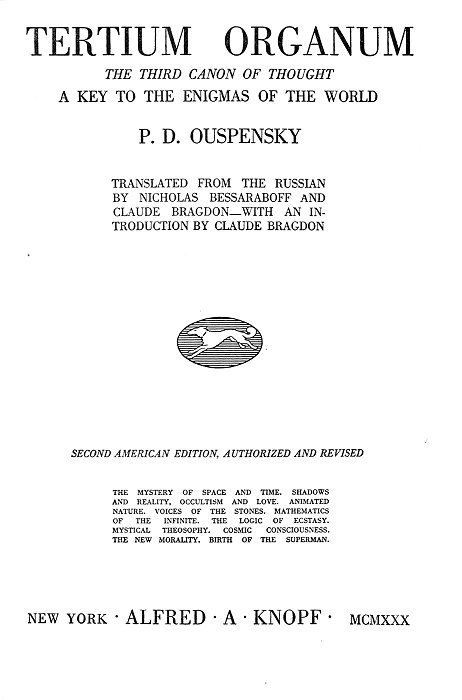 Tertium Organum, by P.D. Ouspensky, [1922], at sacred-texts.com
