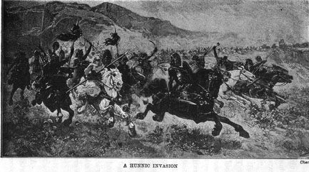 THE fierce and warlike tribe, called the Huns, who had driven the Goths to seek new homes, came from Asia into Southeastern Europe and took possession of a large territory lying north of the River Danube.