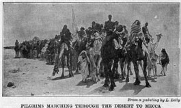 The tomb of Mohammed is visited every year by people from all Mohammedan countries. Mecca, the birthplace of the prophet, is also visited by vast numbers of pilgrims. Every Mussulman is bound by his religion to make a visit or pilgrimage to Mecca at least once in his life. Whenever a Mussulman prays, no matter in what part of the world he may be, he turns his face towards Mecca, as if he were always thinking of going there.