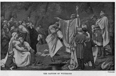 After Charlemagne conquered them he made their lands part of his kingdom. A great number of them, among whom was Wittekind, then became Christians and were baptized; and soon they had churches and schools in many parts of their country.