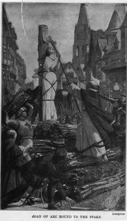 So in the market-place at Rouen the English soldiers fastened her to a stake surrounded by a great pile of fagots.