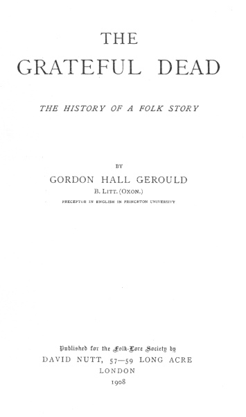 The Grateful Dead, by Gordon Hall Gerould, [1908], at sacred-texts.com