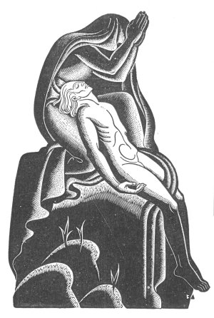 Only through his mother could help come to Lemminkainen. She had bided at home, troubled by his long delay in returning. One day she looked up the comb and the hair-brush he had left behind: she saw blood trickling from the comb, blood dripping from the hair-brush. She knew that blood was coming from the body of her son. She gathered up her skirt and she went off to find him.