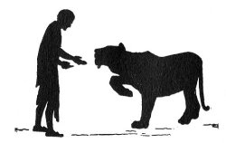 The tiger, sitting on his haunches, lifted his right forepaw from which a splinter of wood protruded. With deft fingers the Brahman extracted the bit, and, before the tiger could utter his thanks, said, smiling, "If your heart prompts you to help me and all mankind, see that the rest of your days and nights you make not too free use of that great