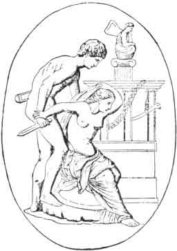 ![HUMAN SACRIFICE AMONG THE GREEKS.<br> [Polyxena dies by the hand of Neoptolemus on the tomb of Achilles.--<i>After an ancient cameo in Berlin</i>.]](tn/generic.jpg)