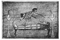 THE SOUL VISITING THE MUMMY. (From the Ani Papyrus)
