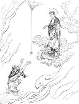 BUDDHA EXTENDING HIS HELP TO A SUFFERER IN HELL.