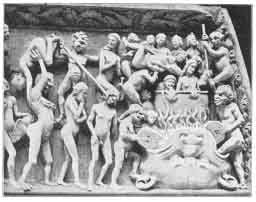 Reminding one of similar notions prevalent in ancient Egypt. (About 1150. From the cathedral in Auntun, France.)
