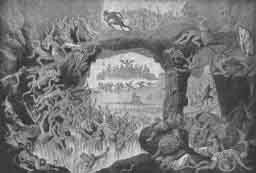 These descriptions of hell are, in all their essential features, still current in "darkest Europe" and also in "darkest America." The picture of hell, here reproduced, surpasses in drastic beauty and graudeur of stage-effect the paintings of the famous Hell Breughel. It possesses the additional interest of being still in the market, being even now advertised and sold among other religious pictures.