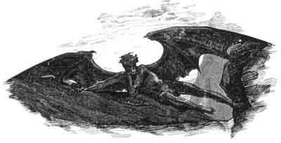 eyes, fire in his mouth, smoke issuing from his nostrils, and with the wings of a bat. We see that this pleasant description of