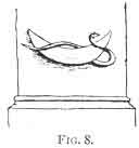 The writer has seen boats having eyes on either side of the prow in some other places, at Smyrna, or one of the Greek ports, but having missed his note cannot recall at which port it was. This custom is evidently of great antiquity. The eye was placed on boats by the ancient Egyptians, 218 and also by the Etruscans. 219 Dennis remarks: 220 "The presence of eyes on the bows of ancient vessels, perhaps originating in the fancied analogy with fish, or to intimate the vigilance necessary to the pilot, is well known--'they were charms against the evil eye.'" 221