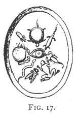 No. 6 (Fig. 17) also a gem from Antike Paste in Berlin, described by Winkelmann, p. 554. It has the eye in the centre with tortoise, lizard, scorpion, frog, bee, serpent, crab, and another bee, surrounding. 211