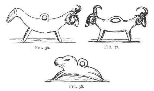 122:197 Professor Huxley says (Science and Hebrew Tradition, 1893, p. 309): "The teraphim were certainly images of family gods, and as such in all probability represented deceased ancestors," and further that Jacob was not "scandalised by the idolatrous practices of his favourite wife . . . for the teraphim seem to have remained in his camp." Other authorities say (Reginald Stuart Poole in Smith's Dict. s.v. "Teraphim, Magic." Also W. Aldis p. 123 Wright, s.v. "Nehushtan ") "there is no evidence that they were ever worshipped. "There seems to be a consensus of opinion that the teraphim, whatever they were, had much to do with magic. It is here suggested that many of the numberless little bronze statuettes, to be seen in various museums, probably represent the Teraphim of the Hebrews and the Lares of Rome, and are not mere ornaments. Fig. 105 is surely one of these, and its original cannot be later than the time of Jacob. The terra-cotta figures too, beginning with the crude forms found at Mycenæ, and developing into the beautiful artistic statuettes of later Greece, must have been of the same character; for we cannot suppose that as mere ornaments they would have been so carefully deposited along with the dead. Nor does there appear to be any evidence that the Greeks or Romans ever imbibed the Egyptian notion of placing figures of this kind with the dead, as ushebtiu, to attend on the departed in the next world.