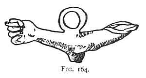 The sword or dagger grasped in the hand appears not only as a separate charm on Fig. 112, but is in the hand of the gladiator on the Woburn marble (Fig. 24) and in several of the hands of Diana Triformis (Fig. 163). This may represent the knife shown on the Mano Pantea (Fig. 148), or it may be the dart of Diana Venatrix as on Fig. 112.