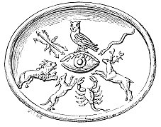 of this way of expressing a name is St. John's so much discussed "Number of the Beast," employed to screen from vulgar curiosity some dangerous secret. What though its analysis has supplied good Protestants like Bishop Newton with a deadly weapon (in their own eyes) against the Pope, after the sum total has been reduced into its integrals Λατεινὸς; yet a prosaic non-controversialist will be more inclined to suspect that the Kabbalistic number shrouds the name of some potentate of the times who had happened to make himself especially formidable to the beholder of the Vision. * But the titles Iao, Abraxas, and the like, instead of being recent Gnostic inventions, were in all likelihood recognised "Holy Names," and borrowed from the most ancient religions of the East. Pliny must be alluding to something of the sort when he mentions with a sneer the miraculous powers ascribed by the Magi to amethysts engraved with the names of the Sun and Moon--names certainly from the nationality of his authorities not inscribed in either the Greek or the Latin tongue. In the "Shemesh Eilam," "Adonai," "Abraxas" of these talismans we may reasonably recognise the words of power referred to by the great naturalist.