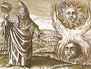 “They see themselves in others. For all things are transparent, and there is nothing dark or resisting, and everyone is manifest to everyone internally, and all things are made manifest; for light is manifest to light. For everyone has all things in himself, and again sees in another all things, so that all things are everywhere, and all in all, and each in all, and infinite the glory. For each of them is great, since the small also is great. And the sun there is all the stars, and, again, each and all are the sun. In each, one thing is pre-eminent above the rest, but it also shows forth all.” 3