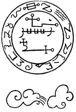 better and more friendly than the rest. 1 The character must be worn upon the person; in the case of a male, it should be placed in the right pocket, but a female must carry it between the breasts, towards the left side, like a reliquary. It should be graven or written on the day and in the hour of Mars for both sexes, and apparently in the case of each of the three spirits.