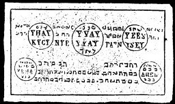 I, N.N., cite Thee, Spirit Yhaij, by El, Yvaij, by Elohim, Ileh, by Elho * Kijlij, by Zebaoth, Taijn Iseij, by Tetragrammaton, Jeha, by Zadaij * Ahel, by Agla that you will obey my orders, as truly in and through the name Schemesumatie, upon which Josua called, and the sun stood still in its course. Fiat, fiat, fiat.