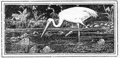 "Ah! those fishes got eaten through their own stupidity," answered the crab; "but I'm not going to let you eat me. On the contrary, it is you that I am going to destroy. For you in your folly have not seen that I was outwitting you. If we die we die both together; for I will cut off this head of yours, and cast it to the ground!" And so saying, he gave the crane's neck a grip with his claws, as with a vice.