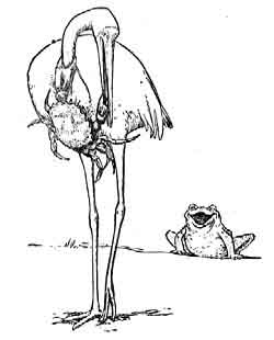 "That a crane should take thought for the fishes is a thing unheard of, sir, since the world began. It's eating us, one after the other, that you're aiming at."