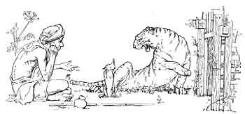 So they returned to the cage, by which the tiger was waiting for the Brahman, and sharpening his teeth and claws;