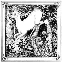 She held the vessel of water to the King's lips, and as he drank he looked into her eyes, and then it became clear to him that the girl was no other than the white hind with the golden horns and silver feet he had chased so far.