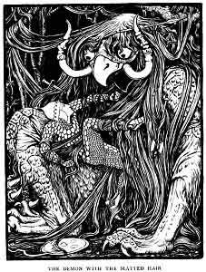On his way he came to a forest inhabited by the Demon with the Matted Hair. At the entering of the forest some men saw him, and cried out: