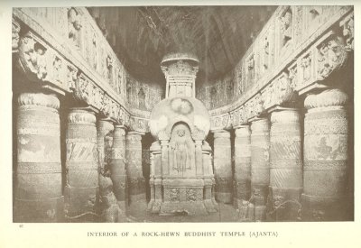 INTERIOR OF A ROCK-HEWN BUDDHIST TEMPLE (AJANTA)