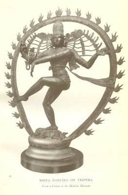 As Natesa, the dancer, Shiva dances triumphantly on the body of a slain Asura. A fine bronze in the Madras