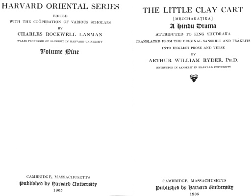 The Little Clay Cart, by Shudraka, tr. Arthur William Ryder, [1905], at sacred-texts.com