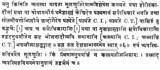 xiii:1 See Sacred Books of the East, vol. ii, p. xlix, note 2. As Govindasvâmin's statements possess a considerable importance, I give here the whole commentary on Baudhâyana I, 1, 2, 6, according to my two MSS., C. I. and CT.: