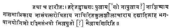 Vasishtha gives only one quotation from Hârîta, II, 6. Hârîta was one of the ancient Sûtrakâras of the Black Yagur-veda, who is known also to Baudhâyana. From a passage which Krishnapandita quotes in elucidation of