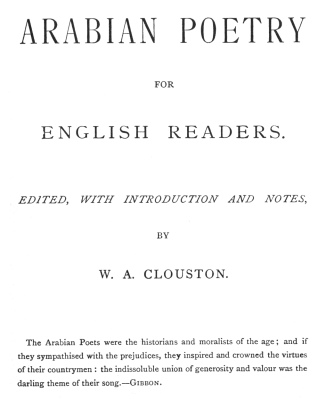 Arabian Poetry, by W. A. Clouston, [1881], at sacred-texts.com