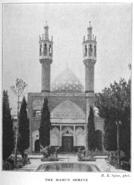 Here, every evening, the learned Custodian of the shrine loved to receive visitors from every Mussulman land, and here, from my earliest boyhood, I came to drink in the pearls of discourse, and to gaze on the beauty of the tiles, the greenery, and the running water. At that time, Allah knows, I understood not why the spot was so dear to me; but, in later days, when I travelled, I always felt that there was some perfection in Mahun which cannot be equalled elsewhere in Iran.