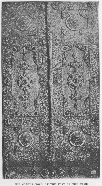 We pilgrims, after kissing the blessed lock, moved round to "The Foot of the Saint," and here, after prostrating ourselves close to a second gold-plated door, which is studded with rare jewels, the appropriate prayer was read.