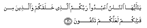 21. Ya ayyuha alnnasu oAAbudoo rabbakumu allathee khalaqakum waallatheena min qablikum laAAallakum tattaqoona