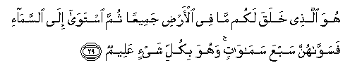29. Huwa allathee khalaqa lakum ma fee al-ardi jameeAAan thumma istawa ila alssama-i fasawwahunna sabAAa samawatin wahuwa bikulli shay-in AAaleemun