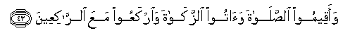 43. Waaqeemoo alssalata waatoo alzzakata wairkaAAoo maAAa alrrakiAAeena
