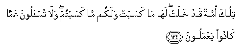 134. Tilka ommatun qad khalat laha ma kasabat walakum ma kasabtum wala tus-aloona AAamma kano yaAAmaloona