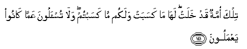 141. Tilka ommatun qad khalat laha ma kasabat walakum ma kasabtum wala tus-aloona AAamma kanoo yaAAmaloona