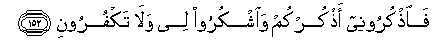 152. Faothkuroonee athkurkum waoshkuroo lee wala takfurooni