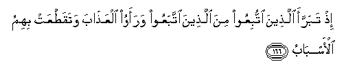 166. Ith tabarraa allatheena ittubiAAoo mina allatheena ittabaAAoo waraawoo alAAathaba wataqattaAAat bihimu al-asbabu