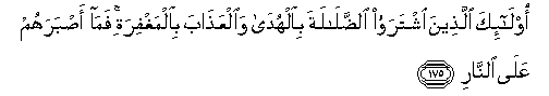 175. Ola-ika allatheena ishtarawoo alddalalata bialhuda waalAAathaba bialmaghfirati fama asbarahum AAala alnnari