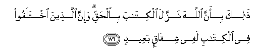 176. Thalika bi-anna Allaha nazzala alkitaba bialhaqqi wa-inna allatheena ikhtalafoo fee alkitabi lafee shiqaqin baAAeedin
