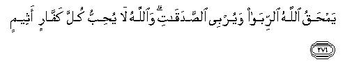 276. Yamhaqu Allahu alrriba wayurbee alssadaqati waAllahu la yuhibbu kulla kaffarin atheemin