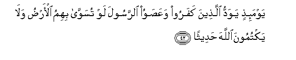 42. Yawma-ithin yawaddu allatheena kafaroo waAAasawoo alrrasoola law tusawwa bihimu al-ardu wala yaktumoona Allaha hadeethan