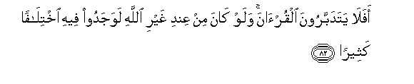 82. Afala yatadabbaroona alqur-ana walaw kana min AAindi ghayri Allahi lawajadoo feehi ikhtilafan katheeran