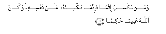 111. Waman yaksib ithman fa-innama yaksibuhu AAala nafsihi wakana Allahu AAaleeman hakeeman