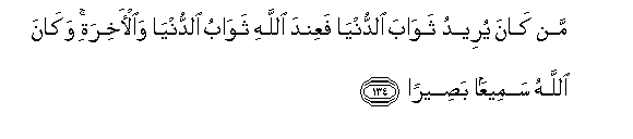 134. Man kana yureedu thawaba alddunya faAAinda Allahi thawabu alddunya waal-akhirati wakana Allahu sameeAAan baseeran